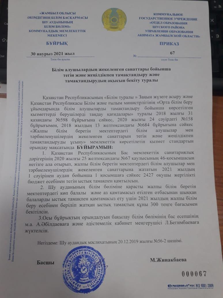 "Мектеп асханасы" республикалық акциясын өткізу туралы бұйрық