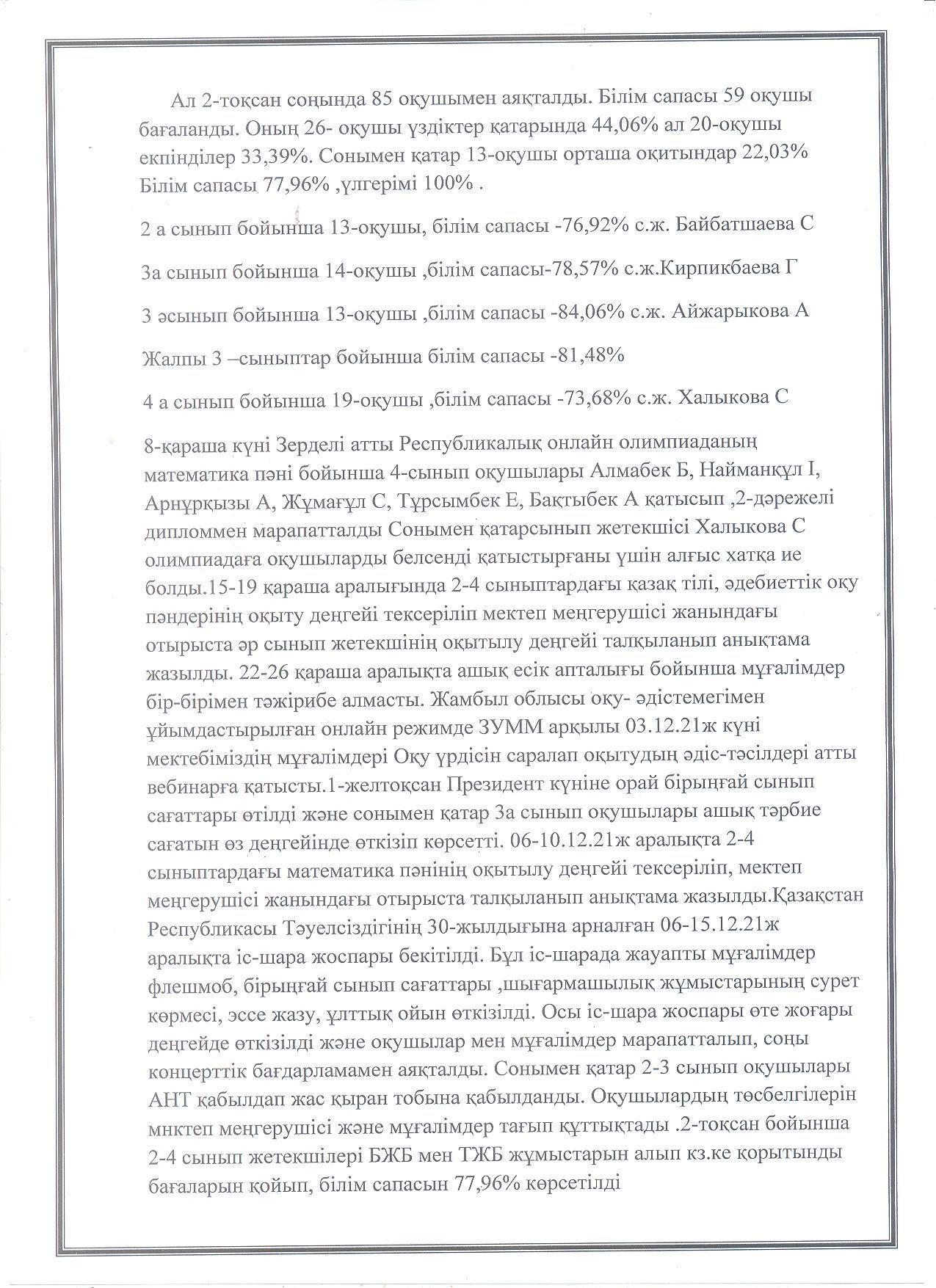 Көктөбе бастауыш мектебінің меңгерушісінің 2021-2022 оқу жылындағы қорытынды есебі