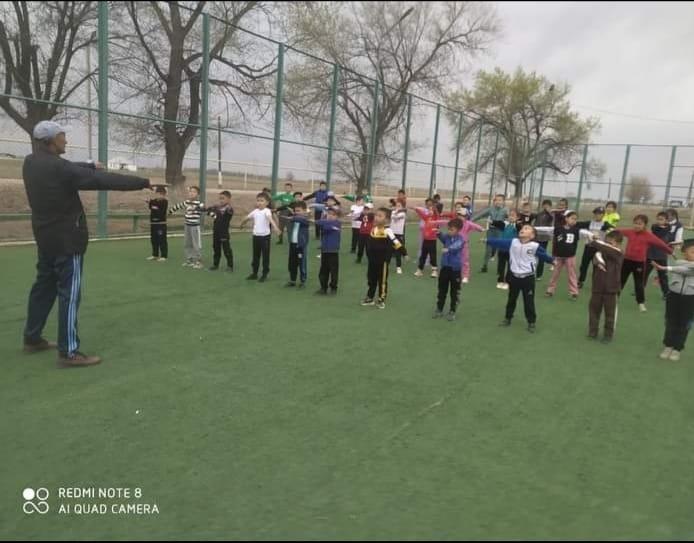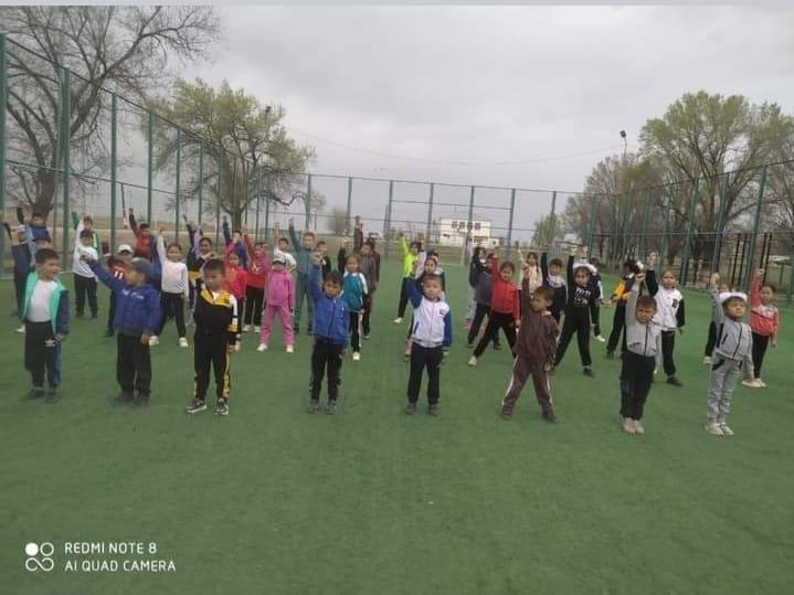 Көктөбе бастауыш мектебінде Дүниежүзілік денсаулық күніне орай ұйымдастырылған таңғы жаттығу.                    Мақсаты: Денсаулықтың негізі қимыл, спорт, дұрыс тамақтану, салауатты өмір салтын сақтау,  оқушыларға денсаулық туралы түсінік беру.